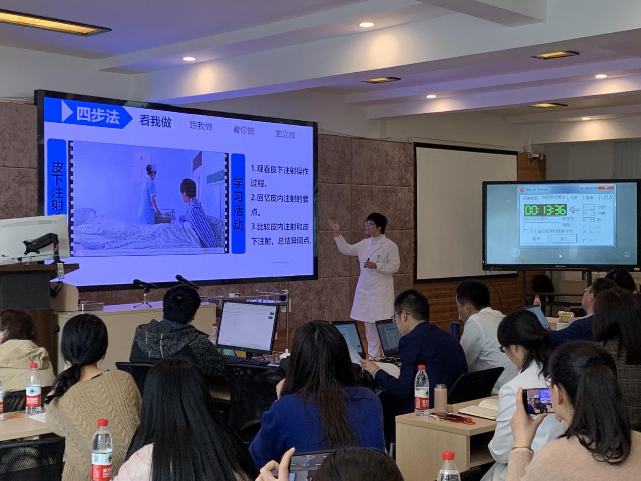决赛分教学实施报告介绍、两段无生教学展示、答辩三个环节。决赛现场,各参赛团队按抽签顺序依次比赛。参赛教师准备充分,教学实施过程设计合理,语言表达生动准确,展示了各自精湛的教学技能和良好的教学风采,给现场评委和观众呈现出充满魅力的课堂。评委们本着科学、公正、公平的原则,对各参赛团队的综合表现进行现场评分。评委组的专家们依次对比赛进行点评,他们充分肯定了我校教师在比赛过程中展现出的教学能力水平,为各参赛作品的进一步优化提升指明了方向。